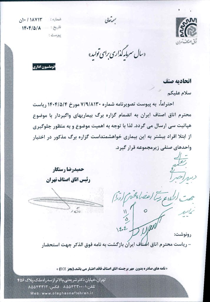 آرزوی سلامتی برای کلیه همکاران صنفی در سراسر کشور دارم .